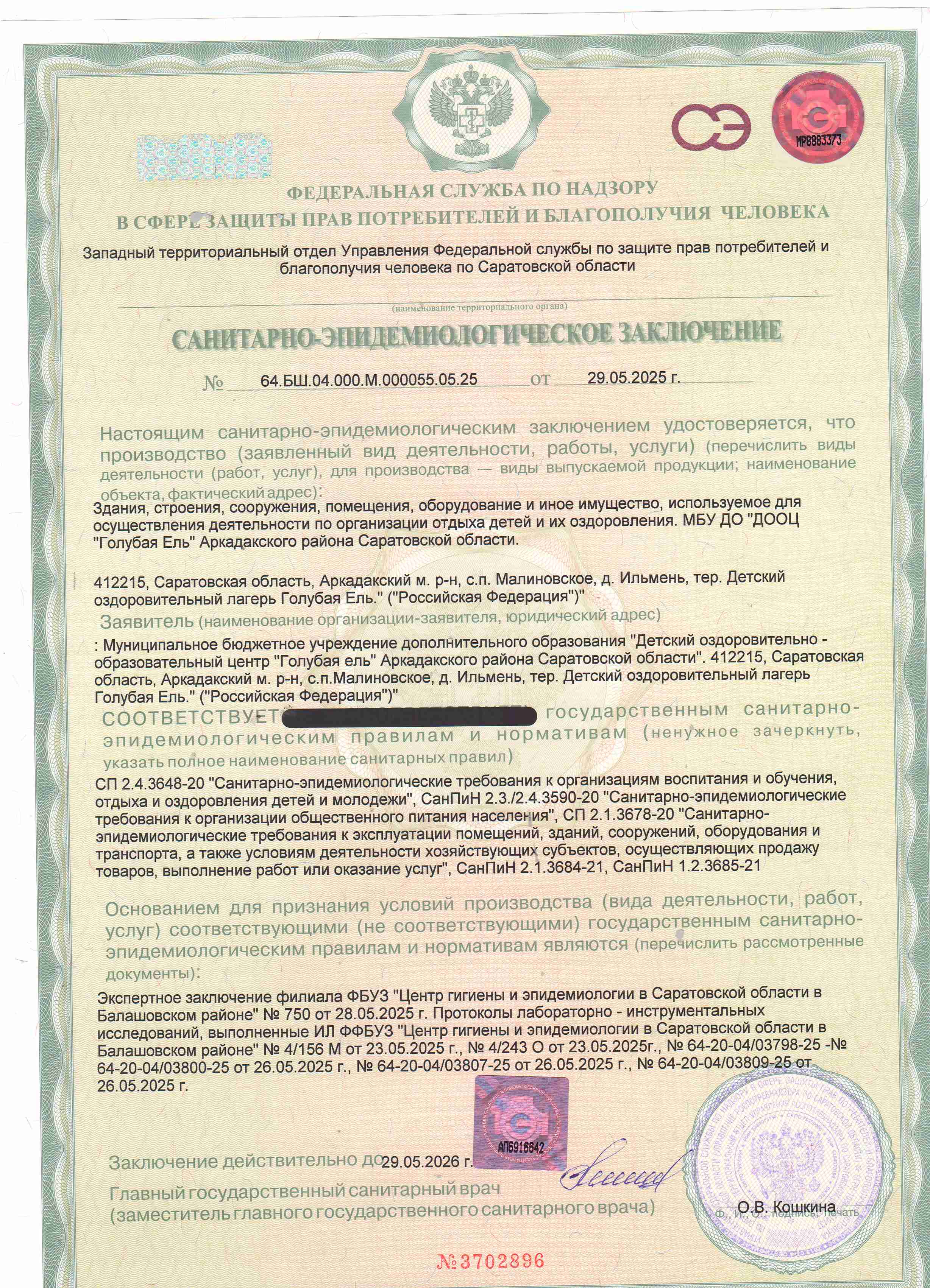 Санитарно-эпидемиологическое заключение